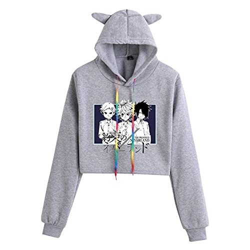 The Promised Neverland Felpa con Cappuccio Emma Norman Ray Manica Lunga Cat Ear Crop Top Felpe con Cappuccio Anime Pullover Felpe per Donne Ragazze