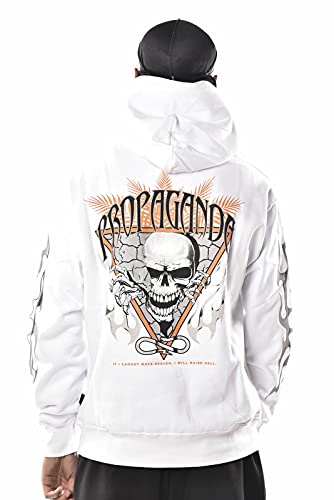 PROPAGANDA Felpa Skeleton Uomo Bianco con Cappuccio Maxi Stampa sul Retro con Teschio ed Effetto Tattoo sulle Maniche XS