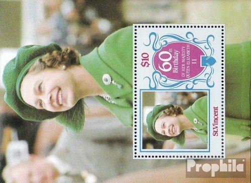 Prophila Collection St. Vincent Block 34 (Completa Edizione) 1986 Queen Elizabeth II. (Francobolli per i Collezionisti) Celebrità/Film/Teatro