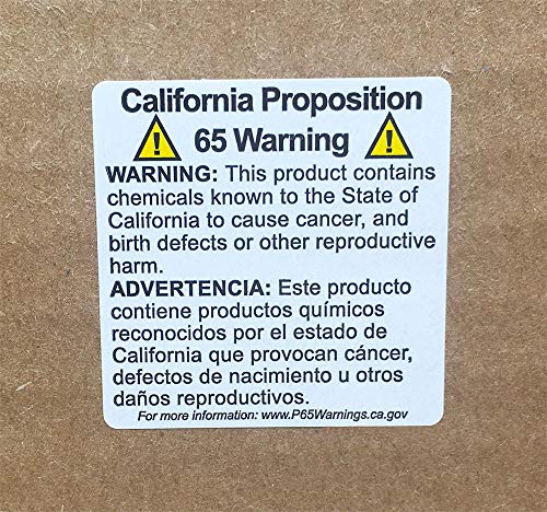 Prop 65 Attenzione: si tratta di etichette generiche prop 65 con avvertenze in inglese e spagnolo. Essi sono regolamentati dallo Stato della California e forniscono un avvertimento per le sostanze chimiche note in California che causano il cancro e danni riproduttivi. Essi forniscono il sito web di avviso P65 e un simbolo di avvertimento triangolo giallo. Il carattere è la dimensione del carattere regolamento.