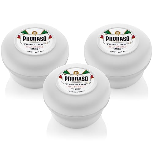 Proraso Sapone da Barba in Ciotola Pelli Sensibili, 3 x 150ml, Sapone barba per la rasatura arricchito con Estratti di Avena e Tè Verde, Made in Italy