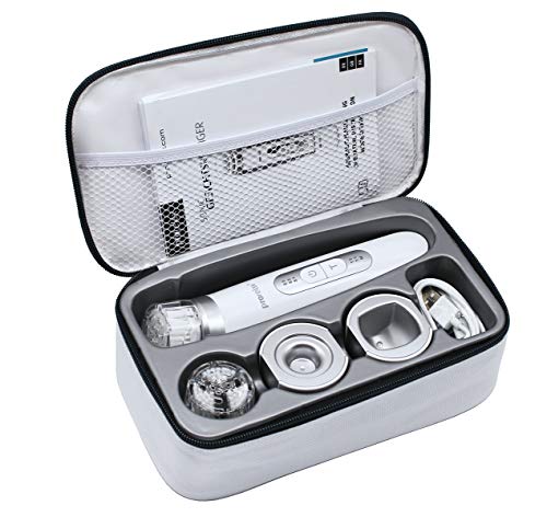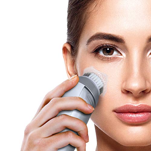 1 testina a spazzola per pelli normali con setole morbide, 1 spazzola per peeling a fibre corte per un'azione esfoliante sulla pelle del viso, design moderno in bianco e argento
