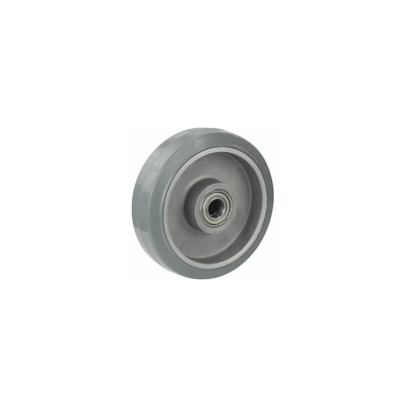 Ruota in gomma piena elastica, grigia, cuscinetto a sfera di precisione, Ø x larghezza ruota 125 x 40 mm, cerchione pieno. Fornitura = montato. Forma = ruota. Materiale ruote = gomma piena elastica. Materiale cerchioni = alluminio. Diametro ruote = 125 mm. Portata a 4 km/h = 200 kg. Larghezza ruote = 40 mm. Cuscinetti ruota = cuscinetto a sfera di precisione. Resistenza alle temperature = da -20 °C fino a +70 °C. Lunghezza mozzo = 41 mm. Foro mozzo = 15 mm. Versione cerchioni = cerchione pieno. Durezza Shore = 70 A. Tipo di prodotto = ruote. Su cerchione in alluminio, ruota in gomma liscia antitraccia. Ridotta resistenza al rotolamento, scorrimento silenzioso. Comfort elevato, grande elasticità. Durezza 70 Shore A. Resistenti a temperature da -20 °C a +70 °C. Superficie di scorrimento vulcanizzata.