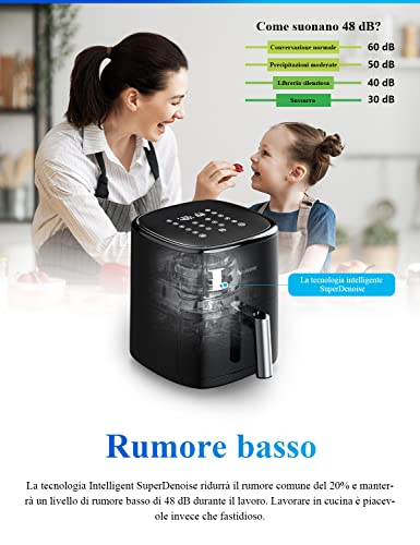 BASSO RUMORE: La tecnologia SuperDenoise riduce il rumore comune del 20% e mantiene un basso livello di rumore di 48 dB durante il lavoro. Lavorare in cucina è piacevole invece che fastidioso.