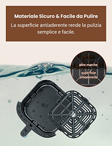 ANTIADERENTE & SCIACQUARE FACILMENTE: Il cestino della friggitrice ad aria T22 è fatto con materiali di sicurezza alimentare che sono privi di BPA e PFOA, in quanto è rivestito in teflon antiaderente, puoi pulirlo direttamente in lavastoviglie.