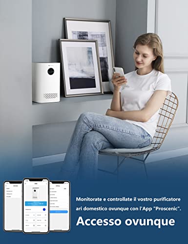 Proscenic A8 SE Purificatore d'Aria, Depuratore Air Smart con APP, CADR Fino a 200m³/h,25㎡,Filtro Ioni d'Argento Antibatterico & Antiallergico, Basso Rumore per Casa