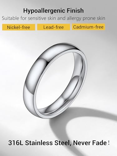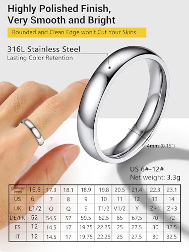 PROSTEEL Anelli Personalizzabili con Incisione in Acciaio Inossidabile 4mm Taglia 14 Colore Argento (Confezione Regalo)- Anello Uomo Acciaio Inossidabile
