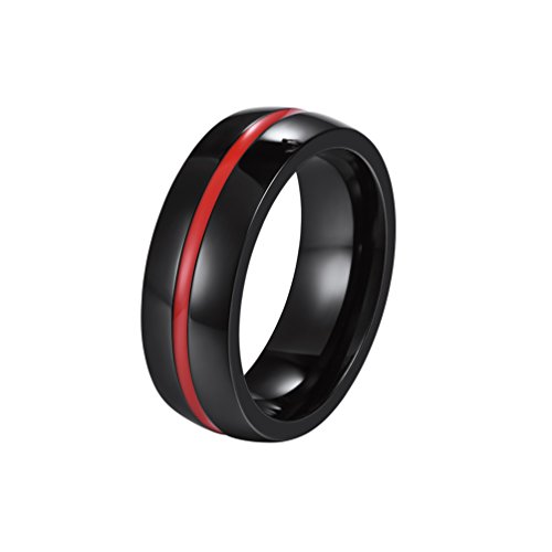 PROSTEEL Anello da Donna/Uomo Semplice Grande Grosso, Larghezza 8 mm Largo Robusto, Acciaio Inossidabile/Smaltato Rosso, Hip Hop Punk Rock, Bicolore Nero Rosso, Regalo Natale (con Confezione)