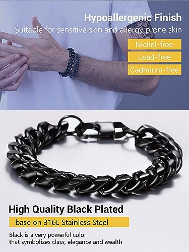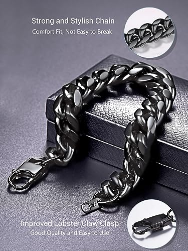 PROSTEEL Bracciale Uomo Catena Cubana Cubana Robusta Grossa Hip Hop Punk 14mm/19cm Nero -Braccialetto Uomo