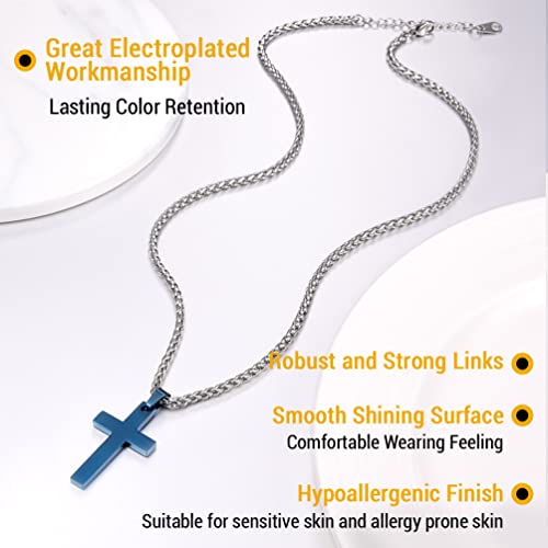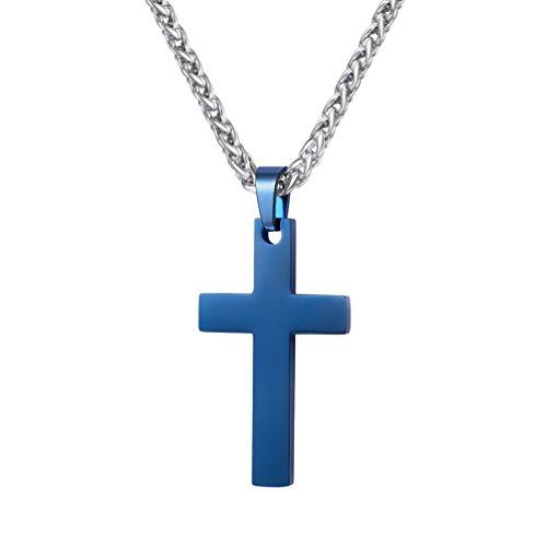 PROSTEEL Collana Pendente con Cindolo di Croce Semplice Acciaio Inossidabile, Catena 55 60 cm, Confezione Regalo Gratuito, per Donna/Uomo, Color Blu