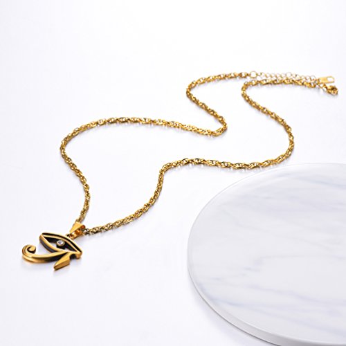 PROSTEEL Collana Pendente con Ciondolo di Occhio di Horus, Zircone Intarsiato, Acciaio Placcato Oro 18K, Colore Oro, Stile Egiziano,Unisex per Donna Uomo(Confezione Regalo)