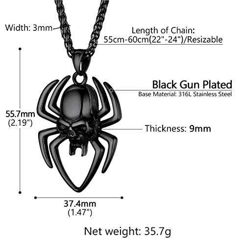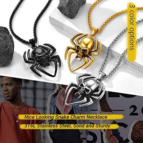 PROSTEEL Collana Uomo Acciaio Inox Nero, Collana in Acciaio con Ragno Stile Hip Hop Cool Ciondolo Ragno con Confezione Regalo