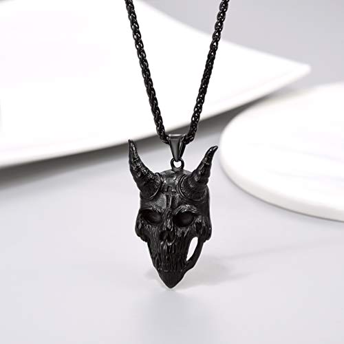 PROSTEEL Uomo Collana Pendente Gotico Cranio Teschio Tengu Diablo Halloween, Catena Regolabile, Acciaio Inox, Stile Punk, Nero (con Confezione)