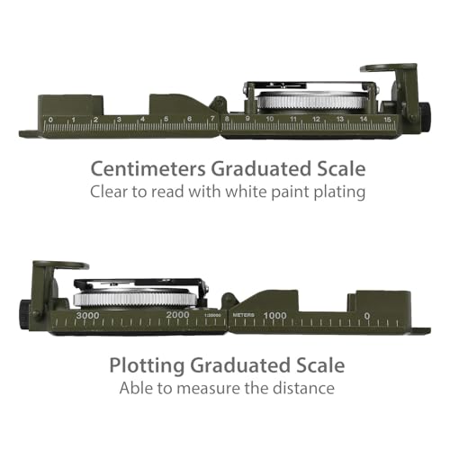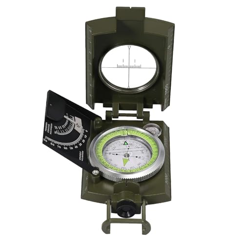 Multifunzioni - Coperchio di metallo pieghevole, quadrante di bussola galleggiante con 360° scala, Lenti prismatiche regolabili, Antivibrazione ed Impermeabile.