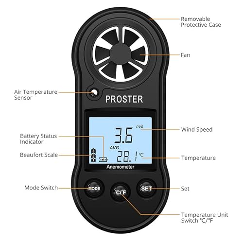 Proster Handheld Digital anemometer Wind Speed Meter LCD con retroilluminazione: utilizzare per misurare la velocità del vento e temperatura;