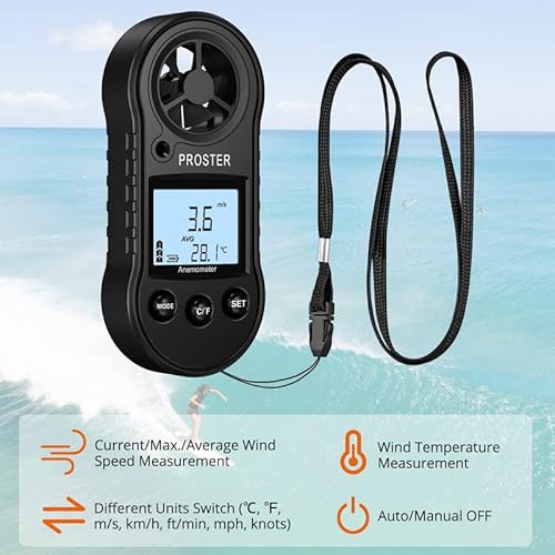 Proster Digitale LCD Wind Speed Scale Gauge Meter Anemometro Termometro Portatile per la Misurazione della Velocità del Vento Palmare Anemometro Misura per Vela Pesca