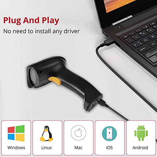 3 in 1 Connessioni: Questo Lettore Codice a Barre Fornisce 3 Modi di Connessione, Si Può Connettere il Lettore Codici con Cavo USB, Ricevitore Bluetooth 2.4G, o semplicemente tramite il Bluetooth.