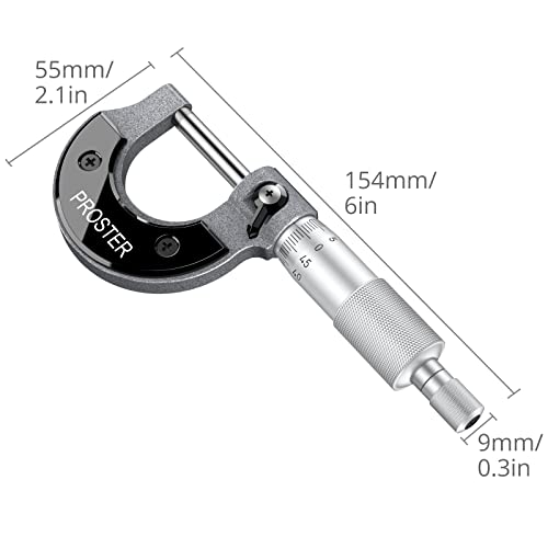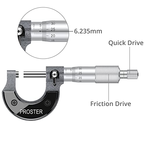 Proster Micrometro Meccanico 0-25mm Calibro Esterno Metrico Graduazione 0.01mm Alta Precisione per Misurazione Esterna