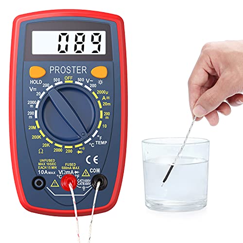 Proster Multimetro Digitale 1999 Multi Tester Portatile con Puntali / Mini Voltmetro Amperometro Ohmmetro con LCD Retroilluminazione per Tensione Corrente Resistenza Temperatura °C/°F Continuità Diodo