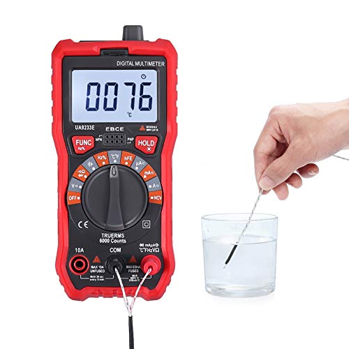 Proster LCD Multimetro Digitale 6000 Count TRMS Auto Range NCV Tester NVC DC AC Tensione Corrente Resistenza Capacitanza Frequenza hFe Temperatura con Clip Coccodrillo