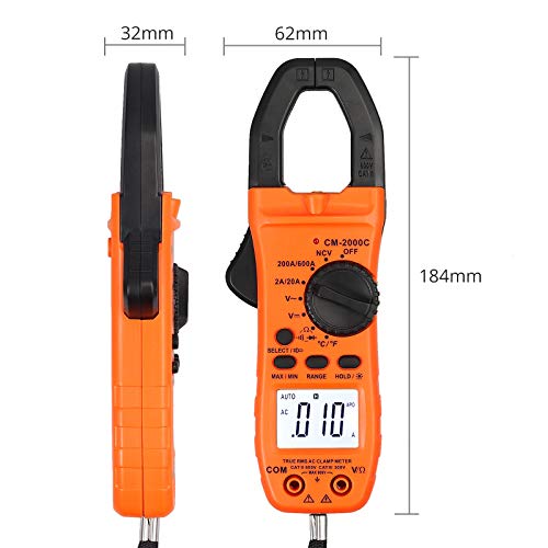 【Pinza Amperometrica Affidabile con True RMS】Utilizzato per Corrente AC e Tensione AC / DC Accurate, Resistenza, Capacità, Frequenza, Temperatura, Diodo, Test di Continuità e Rilevamento della Tensione CA Senza Contatto, il Clamp Meter è Completamente Funzionale e Facile da Usare per Fabbriche, Laboratori, Radio- tecnologia e Famiglia.