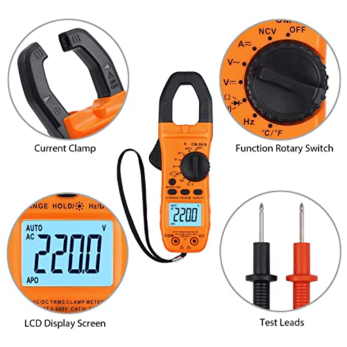 Proster Pinza Amperometrica Digitale Auto-Ranging TRMS 6000 Count Multimetro Digitale Tester AC/DC Tensione Corrente Resistenza Diodi Capacità con Funzione NCV Display Retroilluminazione e Luce