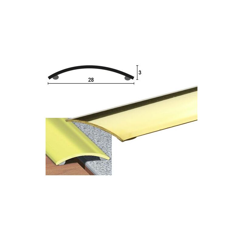 Profili Copriogiunti Prosuol Semial ottone 006 Coprigiunti in ottone finitura lucida. Dimensioni 28xH3 mm. Con adesivo (applicato a caldo). 006A - Lastra 2,7 mt.