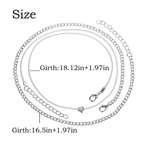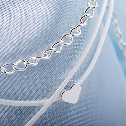 Prosy Beach Layered Heart Cavigliera Argento Cavigliera Braccialetti Catena Piede Gioielli Regolabili per Donne Ragazze