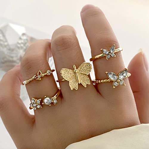 Prosy Boho Butterfly Crystal Knuckle Rings Set Gold Finger Joint impilabile Star Ring per donne e ragazze (A)