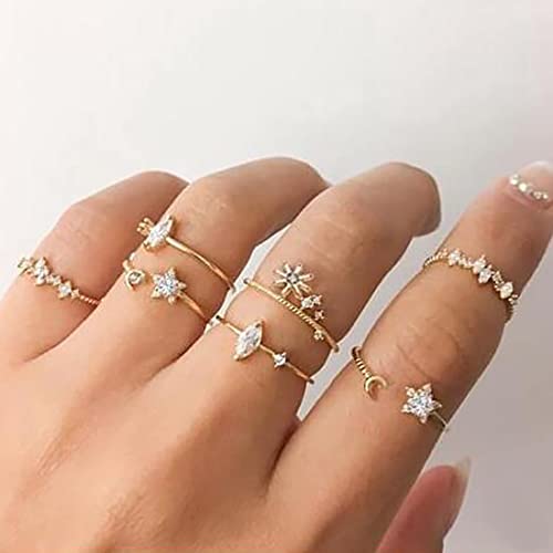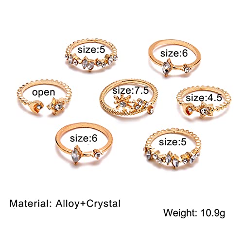 Prosy Boho Butterfly Crystal Knuckle Rings Set Gold Finger Joint impilabile Star Ring per donne e ragazze (B)