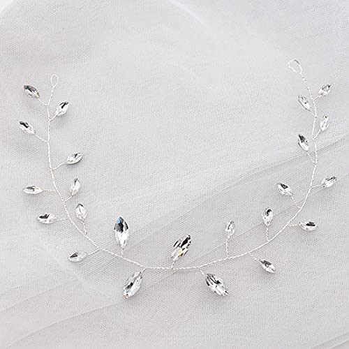 Prosy Fasce per capelli da sposa in argento con cristalli e strass, per donne e ragazze