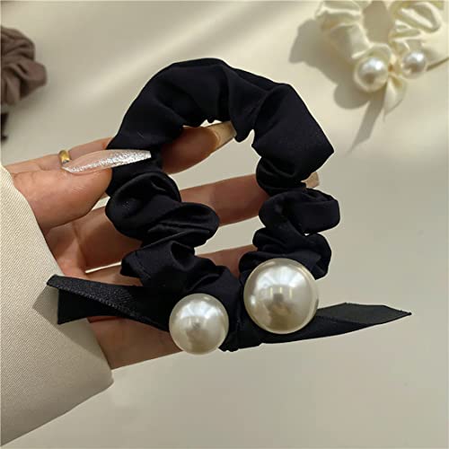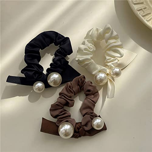 Prosy Fasce elastiche per capelli in raso con perle nere elastiche per capelli per intestino grande, elastici per capelli elastici per capelli per donne e ragazze (confezione da 3)