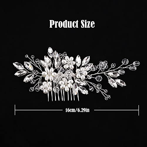 Prosy Pettine per capelli da sposa con fiori e fiori in argento, accessori per capelli da sposa con strass floreali per donne e ragazze