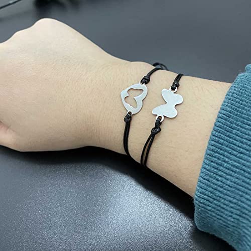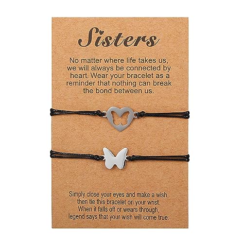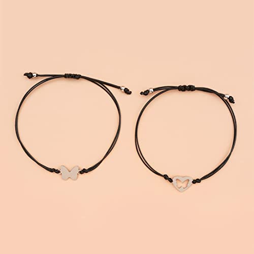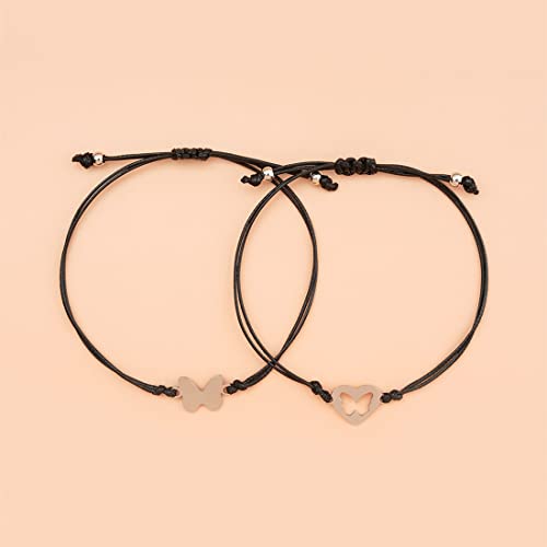 Prosy Simple Black Mother Daughter Bracciali Set Butterfly Wax Line Mommy and Me Bracciale intrecciato a mano Accessori per donne e ragazze (Farfalla)