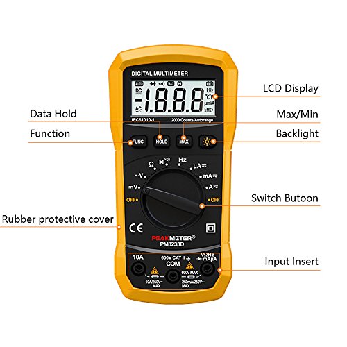 Protech MS8233D 2000 Conti Mini LCD Digitale Tester DC / AC Voltaggio attuale Resistenza Tester Amperometro Multitester Con gamma auto, Datahold, retroilluminazione, Test di diodo, Continuità, Max valore attesa Funzione