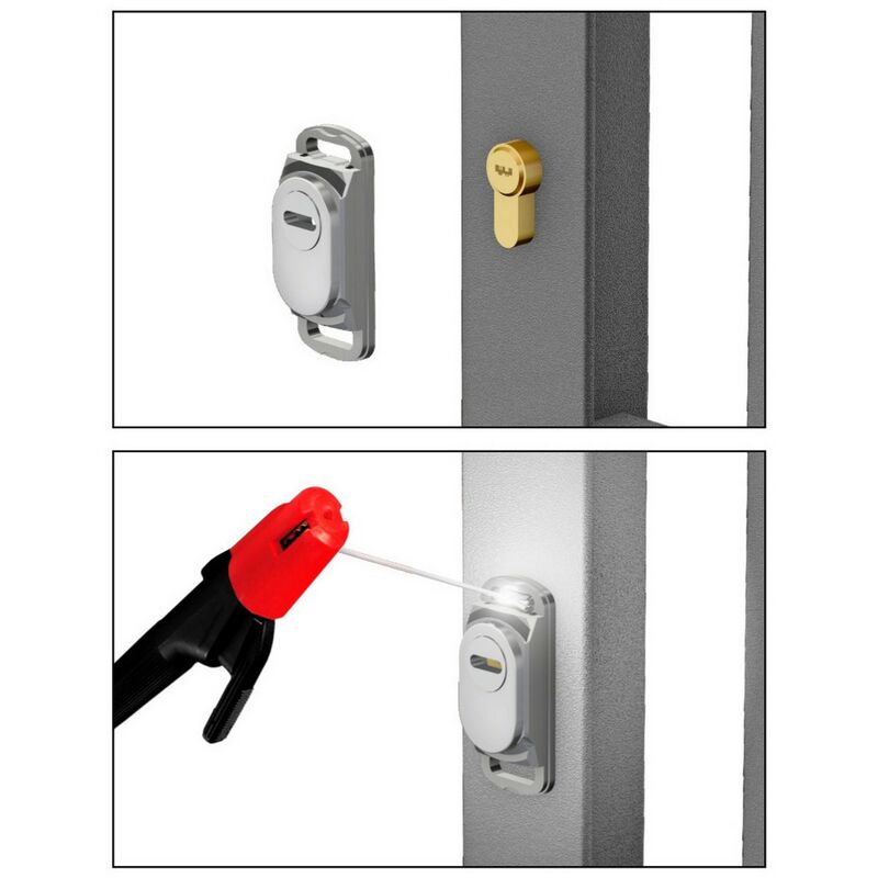 Protezione per cilindri mod. sg 35 applicabile su porte in ferro, alluminio. corpo in acciaio e rotore in acciaio inox. il portarotore regolabile per coprire cilindri che sporgono fino a 14 mm il fissaggio per saldatura. inox