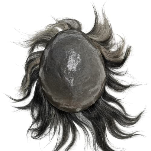 Protesi Capelli Uomo Yanahair Toupee per Uomini Parrucchini Parrucca Capelli Veri Uomo Parrucche 100% Europeo Capelli Umani Veri 0.04mm V-loop PU pelle sottile Toupet 8x10”,#1B40 nero e grigio