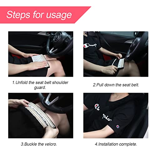 FACILE DA USARE - Molto comodo da installare in un minuto. È dotato di due velcri resistenti: aprire il velcro, quindi aprire la spallina, posizionare la cintura di sicurezza al centro della spallina, unire i velcri e completare l'installazione. Inoltre, il cuscinetto della cintura è rimovibile e lavabile.