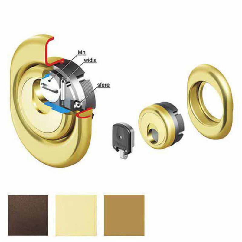 Frontale acciaio mm 50x25 Forma stondata antistrappo Bocchetta copertura mm 68x88 Fissaggio bocchetta su filetto Interasse fori fissaggio mm 38 Nervature antiperforazione Sfere e cilindri acciaio antiperforazione Apertura magnetica rotante - Dotazione 2 chiavi Adatto cilindro europeo chiave piatta collo lungo Applicazione porte rivestimento minimo mm 5