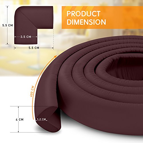 Protezione Bordi per Bambini, Magicbabe Paraspigoli, Protezioni Angolari Soffici Con 6 M di Proteggi Spigoli e 8 Salva Angoli - Marrone