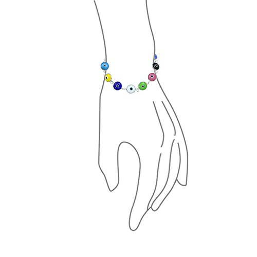 GIOIELLI EVIL EYE - Una versione giocosa di gioielli spirituali, questo braccialetto di collegamento dal design accattivante presenta una serie di perle a motivo malocchio, tonalità vivide irradianti, con brillanti argento sterling 925 o placcato oro e perle di vetro. Materiale ipoallergenico di alta qualità che resisterà alla prova del tempo rendendolo adatto da indossare per l'uso quotidiano.