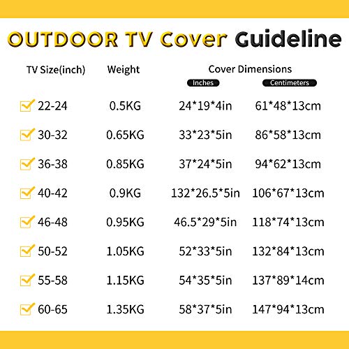 Offre protezione tutto l'anno per la vostra TV da pioggia, muffa, umidità, animali, neve, vento, sole, acqua di mare, escrementi di uccelli.