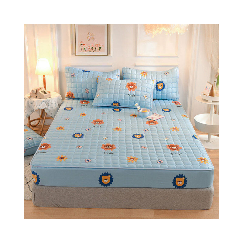 Materiale: tessuto spazzolato in puro cotone, design in poliestere con riempimento mezzanino Dimensioni: 120x200cm,150x200cm,180x200cm.200x220cm Pillowcase48x74cm2PCS Caratteristica: adatto per materasso spessore 5-28cm Comodo e morbido, puoi dormire come lenzuolo Non cambia la sensazione del tuo materasso Lavaggio: Lavare in lavatrice il coprimaterasso con i tuoi fogli utilizzando normali detergenti per la casa che non contengono candeggina. È meglio lavare con acqua inferiore a 30 gradi, non impregnare e mescolare con tessuto scuro.