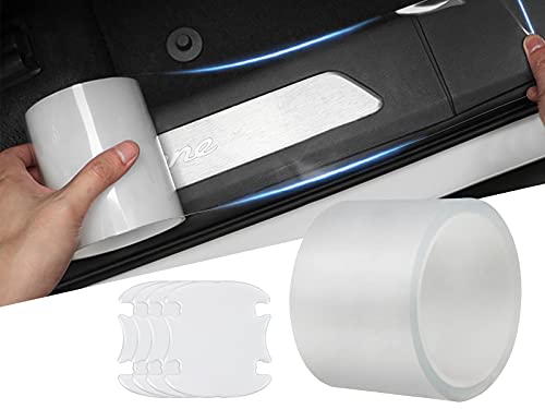 Protezione Paraurti Auto Pellicola Adesiva Trasparente Universale, Protezione Portiera Spoiler Auto Protettore Battitacco Auto Baule Antigraffio, con 4 Pezzi proteggi Maniglia Porta (7cmx10m)
