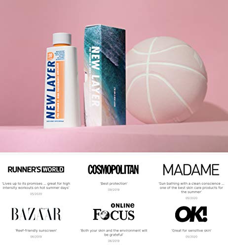 Protezione solare NEW LAYER | SPF 20 | Con provitamina D | Senza microplastiche | Senza octocrylene | Resistente all'acqua | Non danneggia gli ecosistemi marini (200ml)