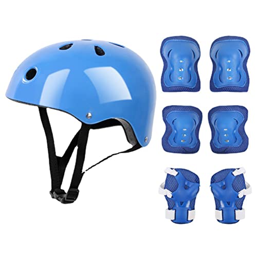 Set di Protezioni per Casco da Pattinaggio per Bambini, Schiuma EPS Ad Alta densità Set di Protezioni per Casco per Bambini Assorbe gli Urti Protezione del Ginocchio del Gomito per Skate (Blu)