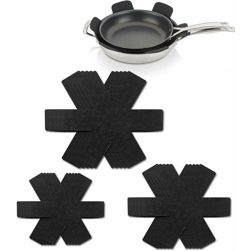 impilabile o annidabile. Dureranno per anni di utilizzo in cucine affollate., 【Ben progettato】 Protezioni per padelle ben progettate. Si evita che le padelle o le casseruole si graffino a vicenda quando vengono impilate per la conservazione. Anche per aiutarti a risparmiare spazio in cucina. 【Pulizia comoda e facile】 Sono molto flessibili e si adattano molto bene alle forme degli utensili. Lavare a mano in acqua tiepida e sapone e stendere in piano per asciugare o pulire con un panno umido secondo necessità.,【Uso versatile】 Queste protezioni per padelle sono progettate per proteggere