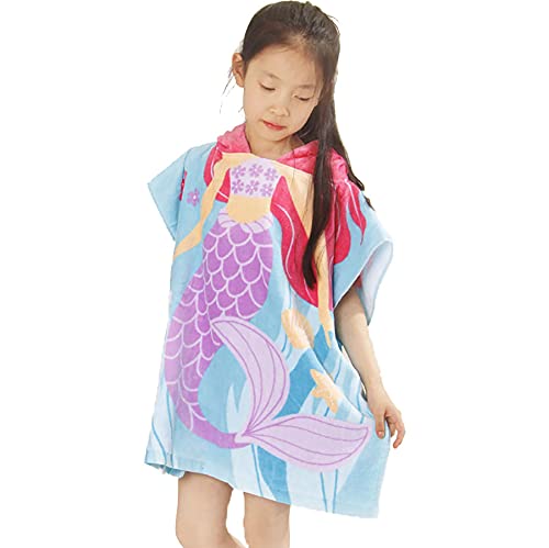 Proumhang Bambini Telo Mare Con Cappuccio,100% Cotone,Telo da Bagno Poncho Asciugamano Cartone Animato Telo Mare Asciugatura Rapida per Ragazze Ragazzi Bambini,2-10 anni Sirena 70CM