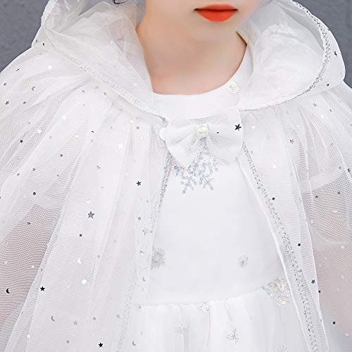 Proumhang Costume da Principessa in Chiffon con Cappuccio a Mantello da Principessa Costume di Carnevale di Halloween Festa per Bambini Cosplay-Bianco+Blu