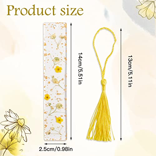 PROUSKY Segnalibri floreali pressati, Marcatori di lettura floreali pressati con nappa, Marcatori per lettori, insegnanti, studenti (giallo)